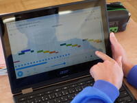 身近な野菜や食べ物のキーワードを使って、パソコン上でリズムを組み立てました。