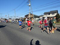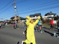 場所は大内中央小の正門で、マラソンの3km地点でした。