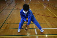 野球の投げる動作と捕る動作をペアになって練習しました。