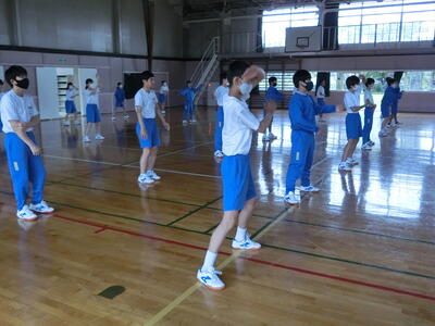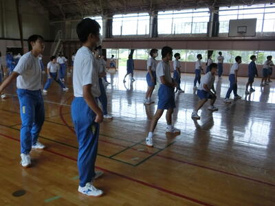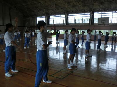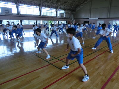 ソーラン節は、プールに入るときの準備運動としても実施しますハート