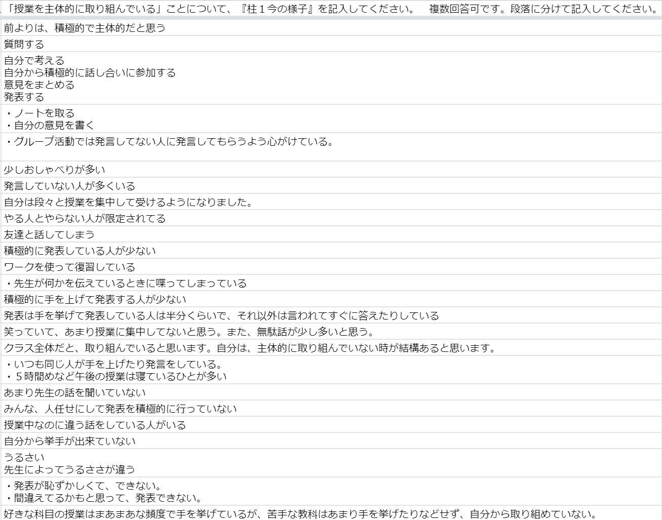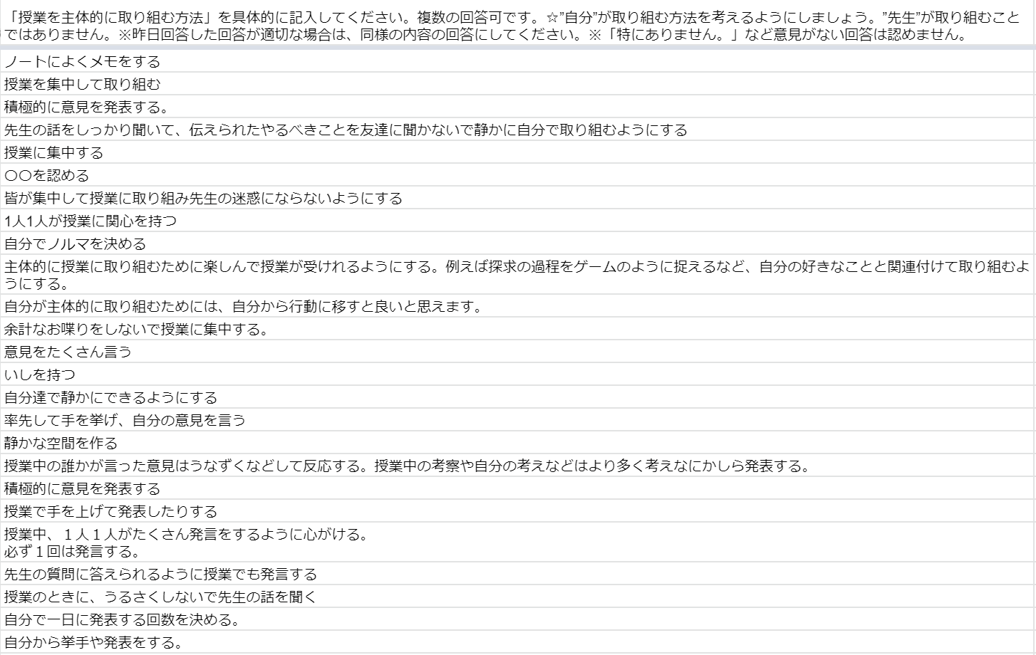 ①②「授業に主体的に取り組む方法」を具体的に記入してください。