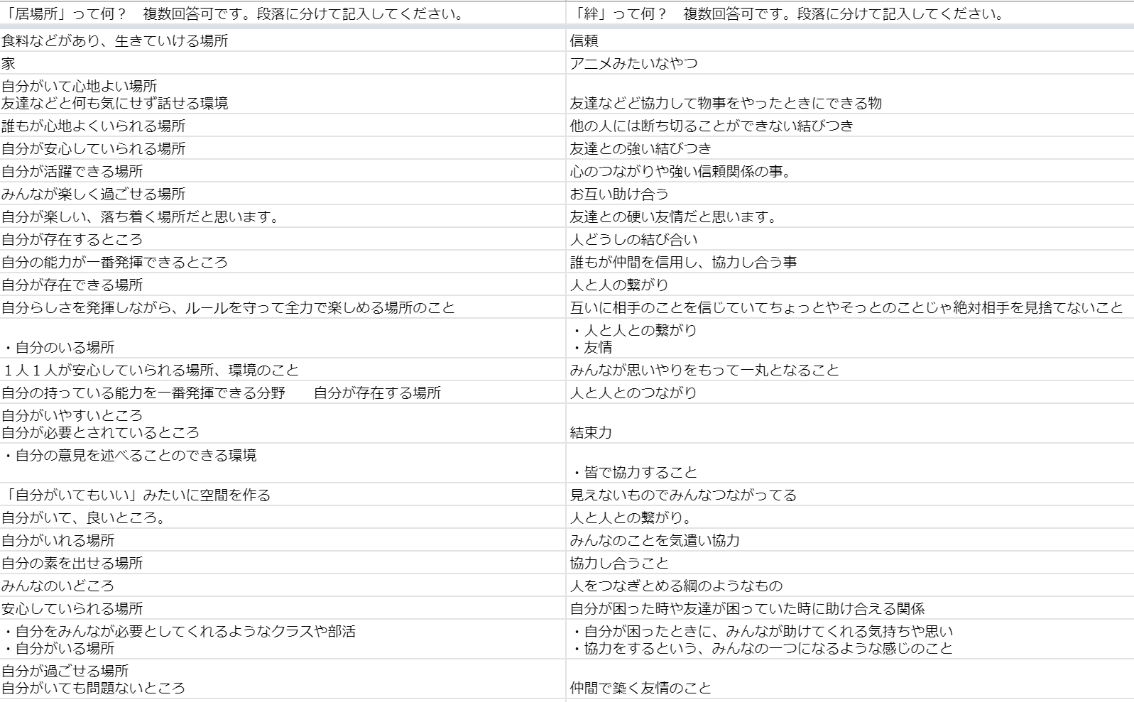 目的を考える前に”居場所”と”絆”とは何か?を記入してください。