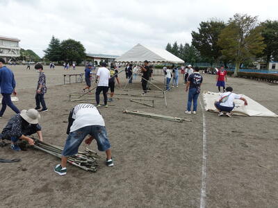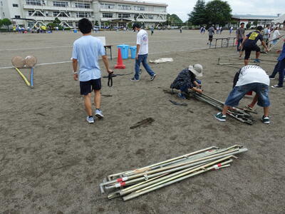 運動会終了後には、メールにてお願いしたテントの片付けを保護者の方と行いました。
