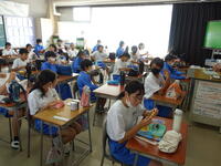学校閉鎖明けのため、校内のいろいろな場所で食べるのではなく、十分換気をしながら教室で食べました。