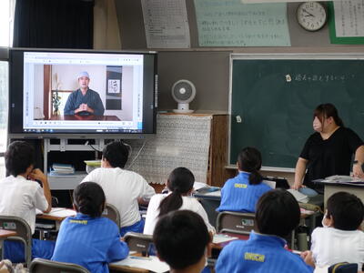 本日は真岡市の山中教育長様、芳賀教育事務所長の吉住所長様を含む4名の先生に授業を見ていただきました。