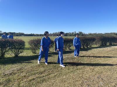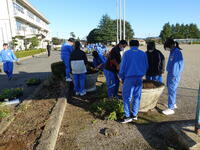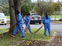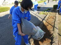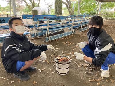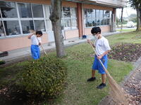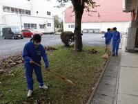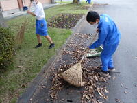 敷地内の落ち葉清掃を行いました。一生懸命取り組んでいました。