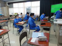 本日の朝会は表彰でしたが、体調不良の生徒がいるため、該当者のみ校長室で表彰を行い、オンラインで教室に中継しました。