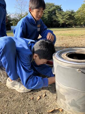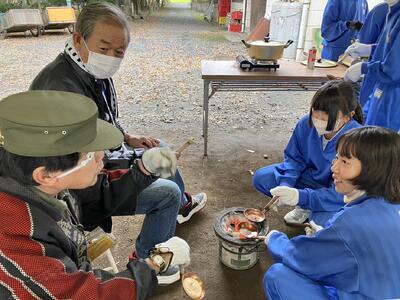 2年生はカルメ焼きを作っています。