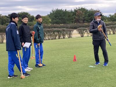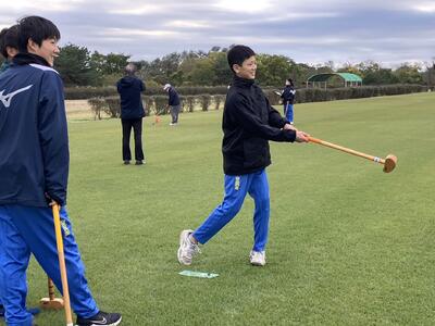 2年生はグラウンドゴルフにもチャレンジしています。