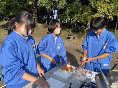 2年生は外でカレーづくりです。