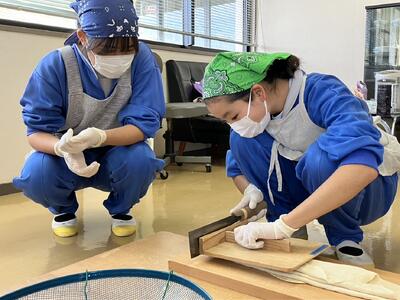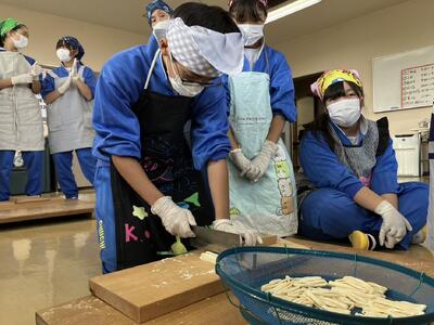 1年生はいよいようどん切りです。