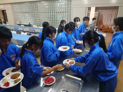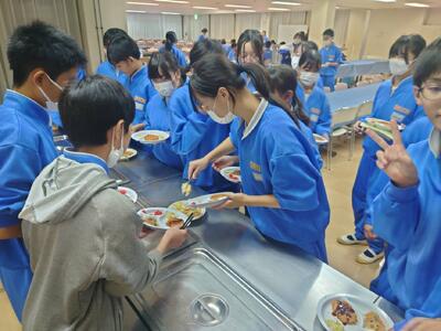2年生はバイキング給食が始まりました。(1年生は通常の給食です)