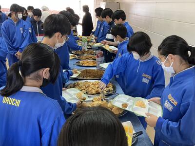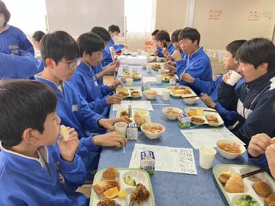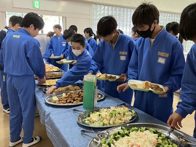 いつもは食べられないメニューや量に、生徒達は大喜びです。