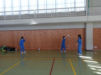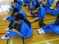 タブレットで作業した後、体育館倉庫等の清掃を行いました。