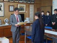 新人戦の地区大会や県大会、駅伝、剣道、書道などの表彰を行いました。