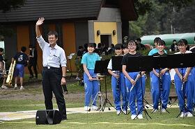 最後には、郡内15校すべてが円になり、『パプリカ』を演奏しました。
