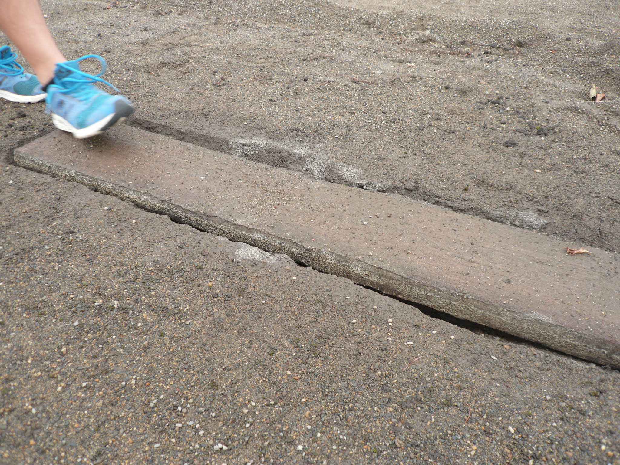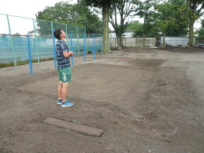 私たち(秋山・阿久津)が修復している幅跳びのピットを確認しに行くと