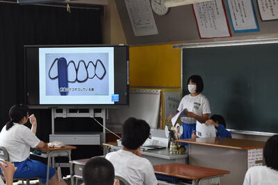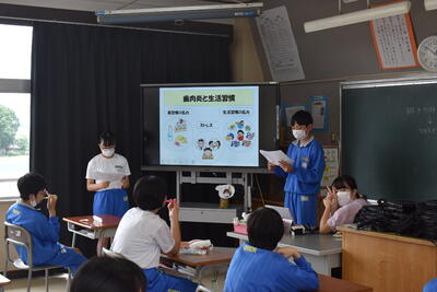 各学級の保健委員が、昼休みに「正しい歯磨きのポイント」について話をしました。