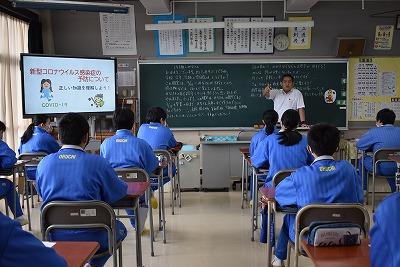 学活にてコロナウィルス感染症の予防について理解を深めました。