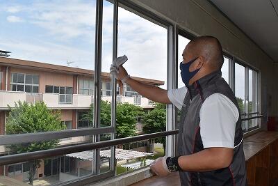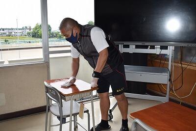 下校後は生徒の皆さんの安心安全のため、使用した教室の消毒作業を行っています。