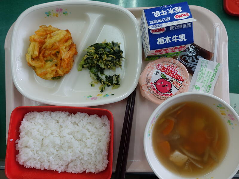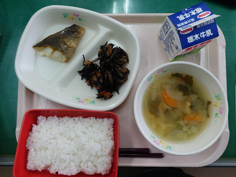ごはん、牛乳、ホッケ文化干、ひじきの炒め煮、野菜のみそ汁