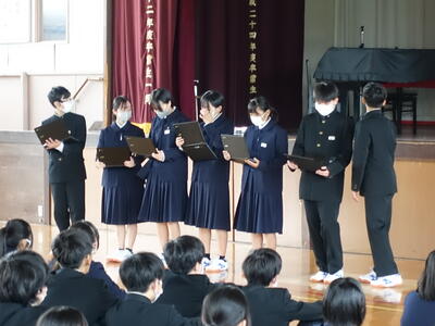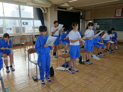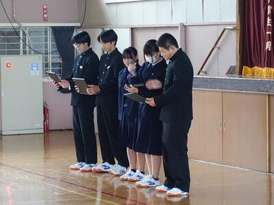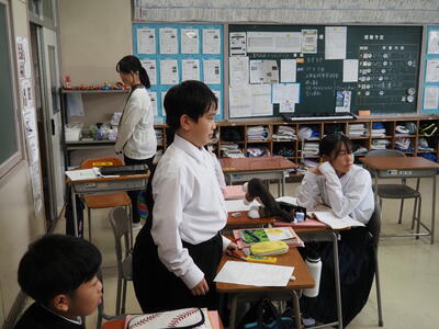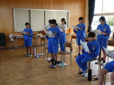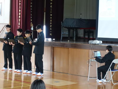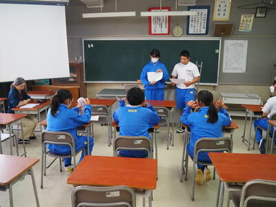 3年の鈴木利徠翔さん、2年秋山愛菜さんが発表しました。