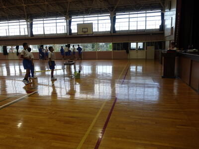 1年生が清掃をして、3年生は清掃と係準備をしました。