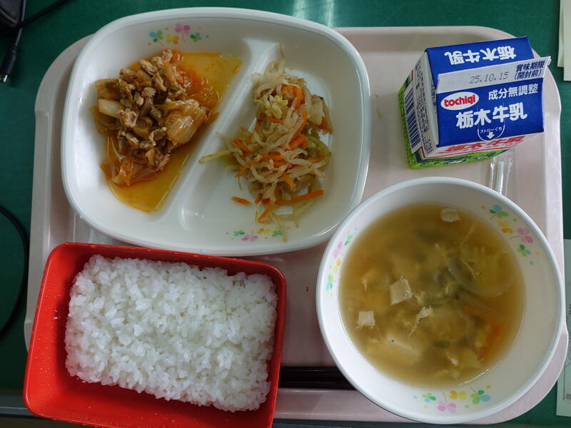 ごはん、牛乳、焼きぎょうざ②、中華くらげサラダ、マーボー豆腐