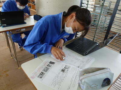 沖縄の地理や歴史についてプリントを使って学習しました。