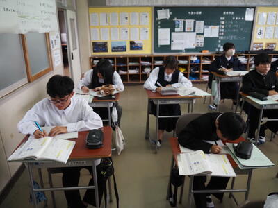 中間テストが近いため、それぞれ問題集などを活用していました。