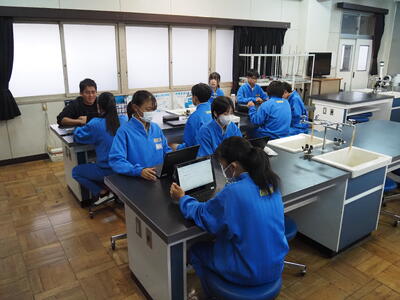 ◆1年2組 理科「混合物をエタノールと水に分ける方法を知ることができる」