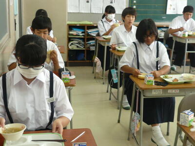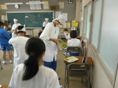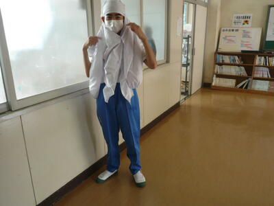 給食当番は、早く給食を食べるために、素早く白衣に着替えて準備し、