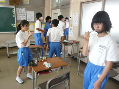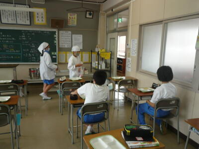 当番以外の人は、手洗いうがいを済ませて、着席して待ちます