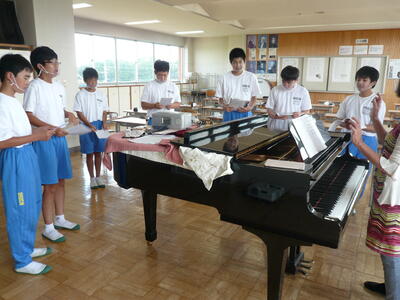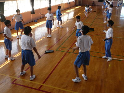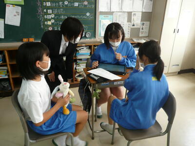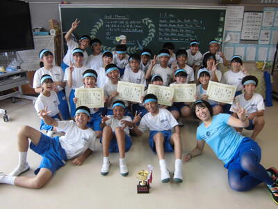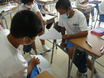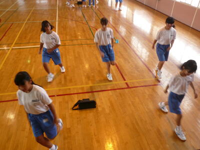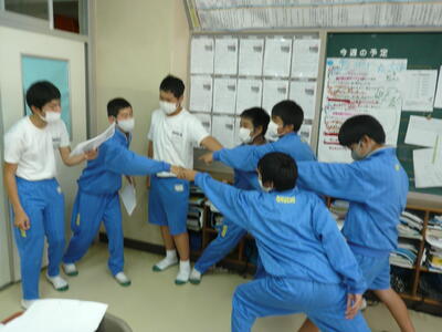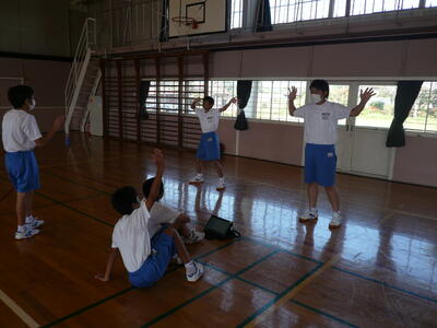 グループに分かれて教え合いながら練習し、発表会を行いました