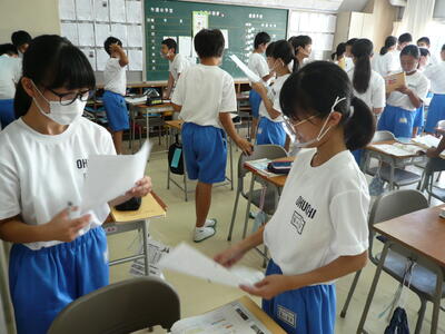 初めての成績記録簿(定期テスト結果)の配布を行いました