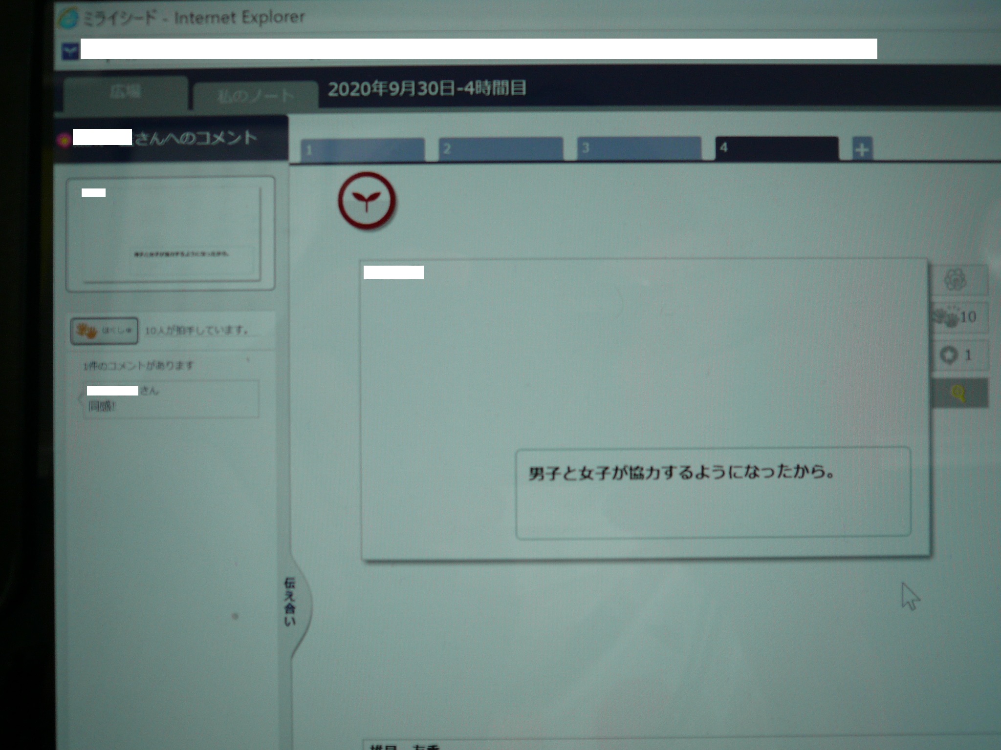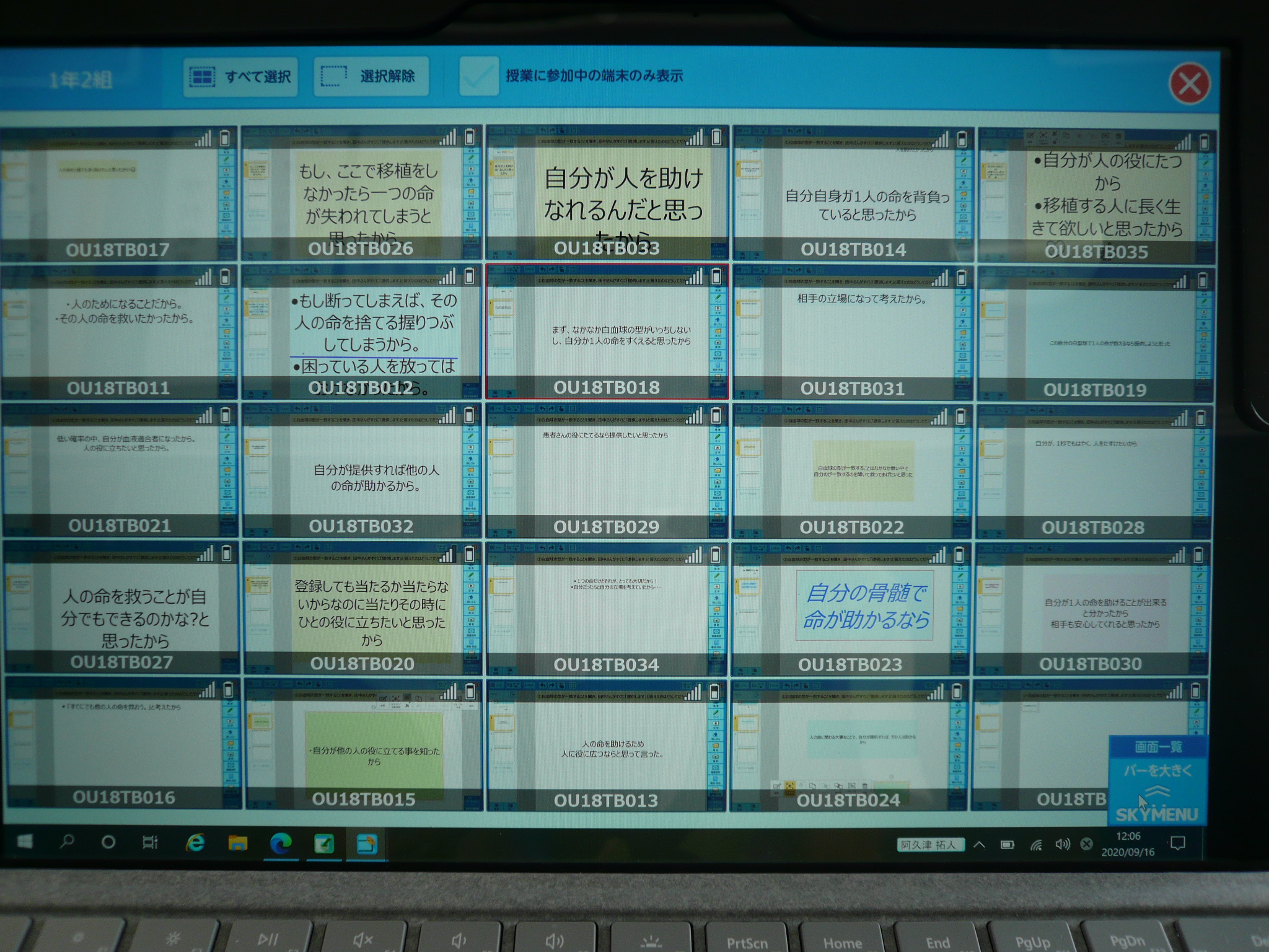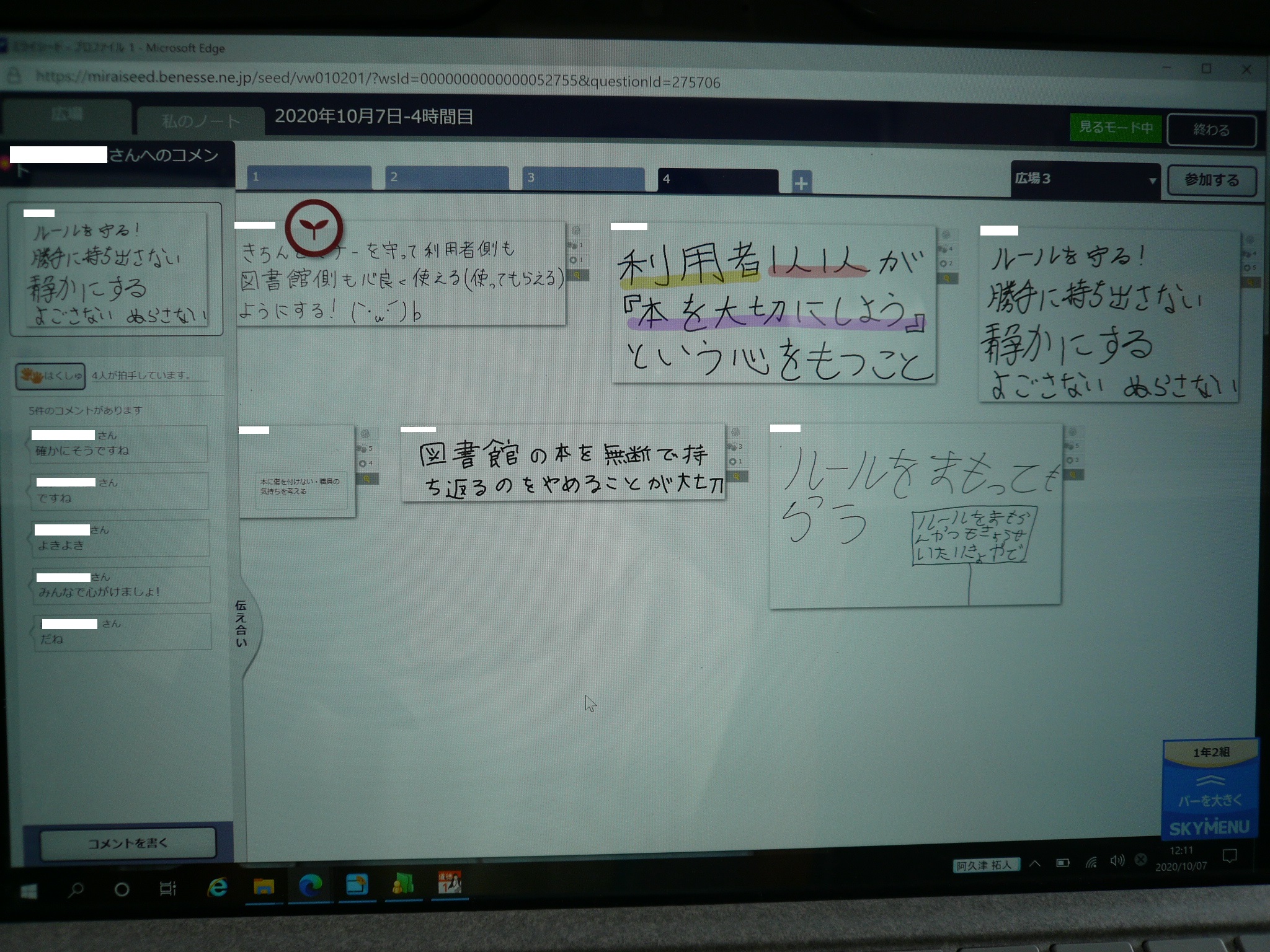 保健の授業で、初めてミライシードのムーブノートを使用しました