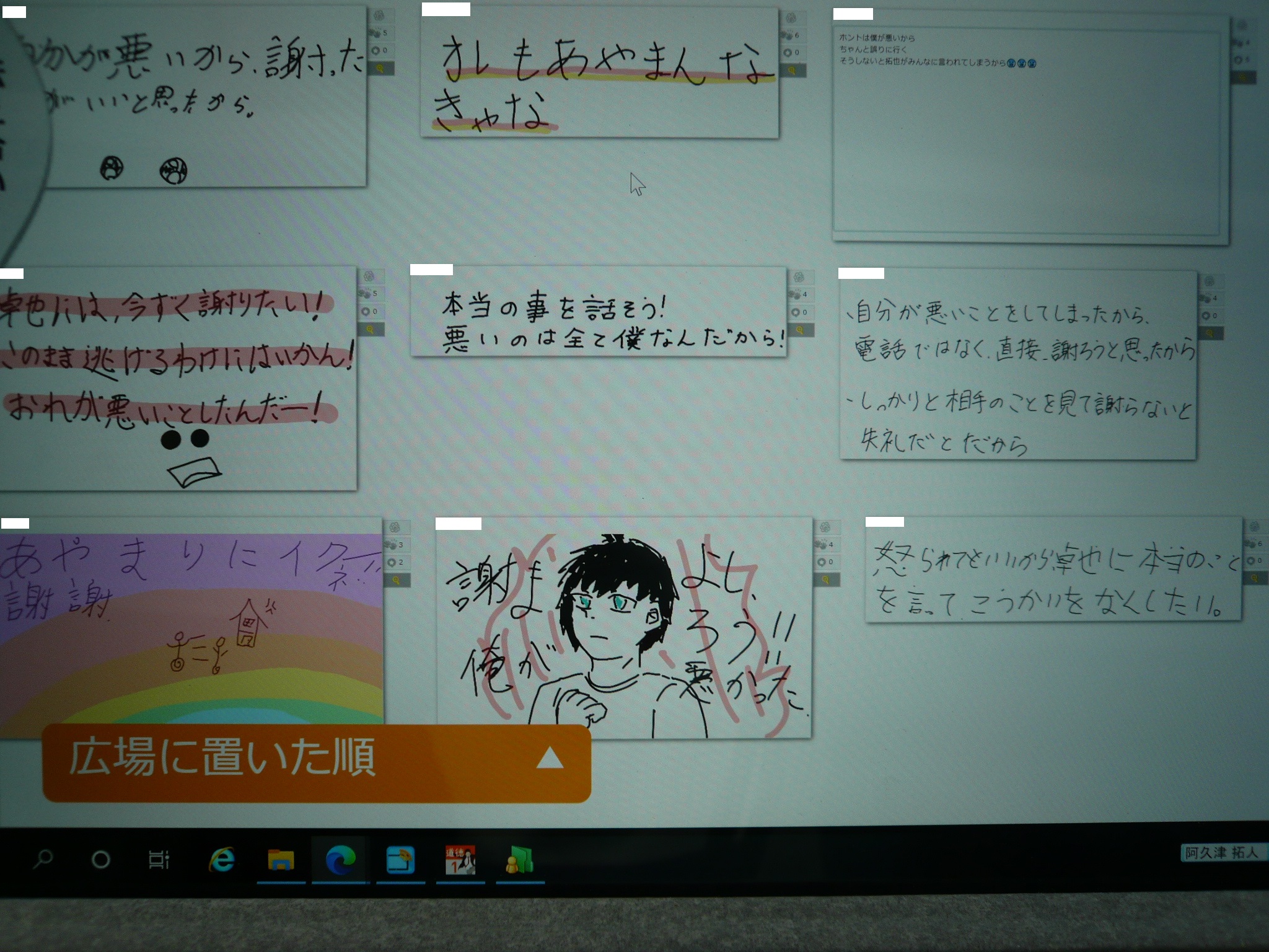 意見を書いた後に、指定した広場に入り、カードを送りました