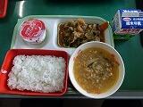 ごはん、牛乳、野菜入り焼き肉、ピリ辛春雨スープ、国産さくらんぼゼリー