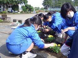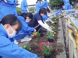 緑タイムは、学校の花だんに花を植えたり、花だんの手入れを行ったりする活動です。