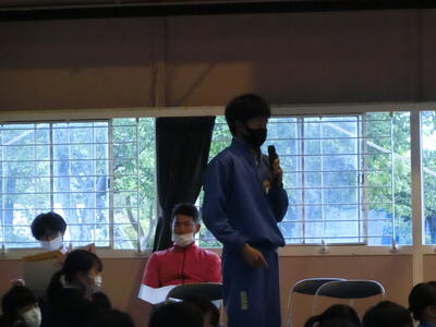部活動紹介では先輩たちが1年生に部活のこと知ってもらおうと一生懸命、発表していました。