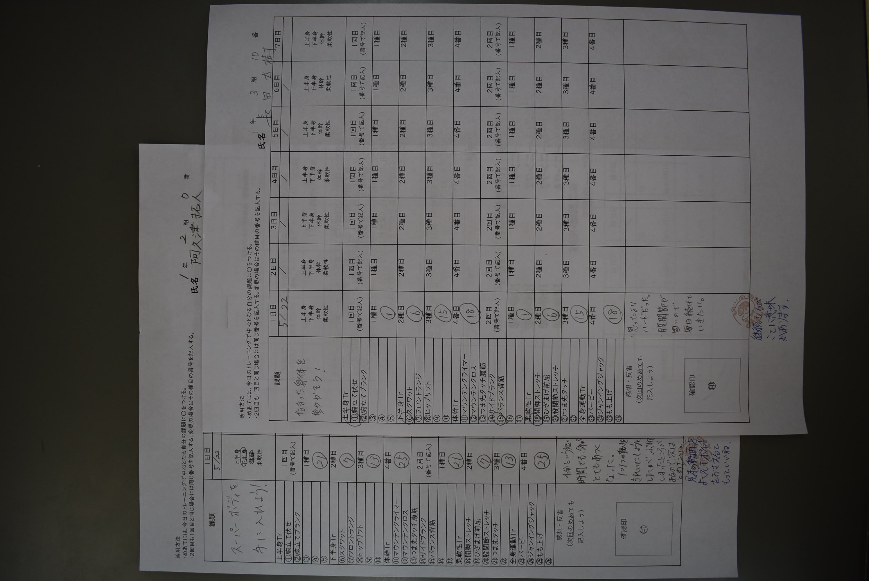 R02 1学年日誌