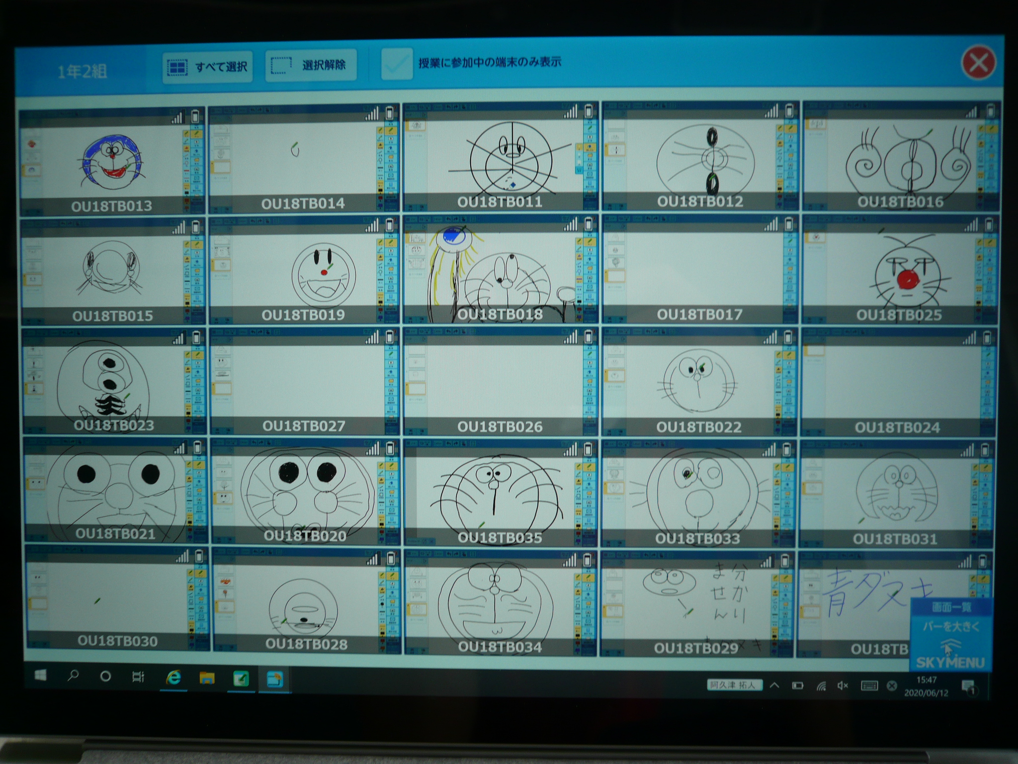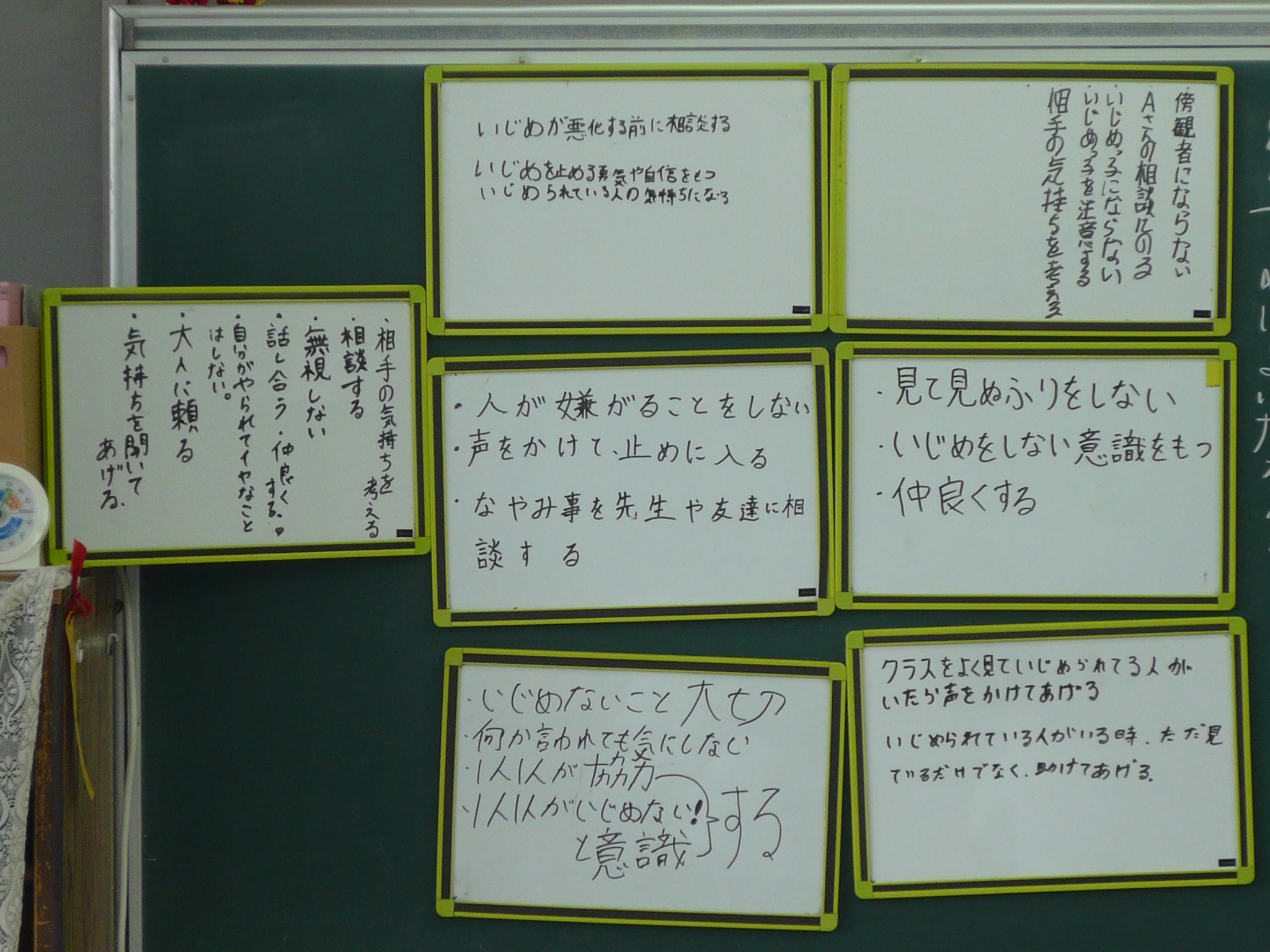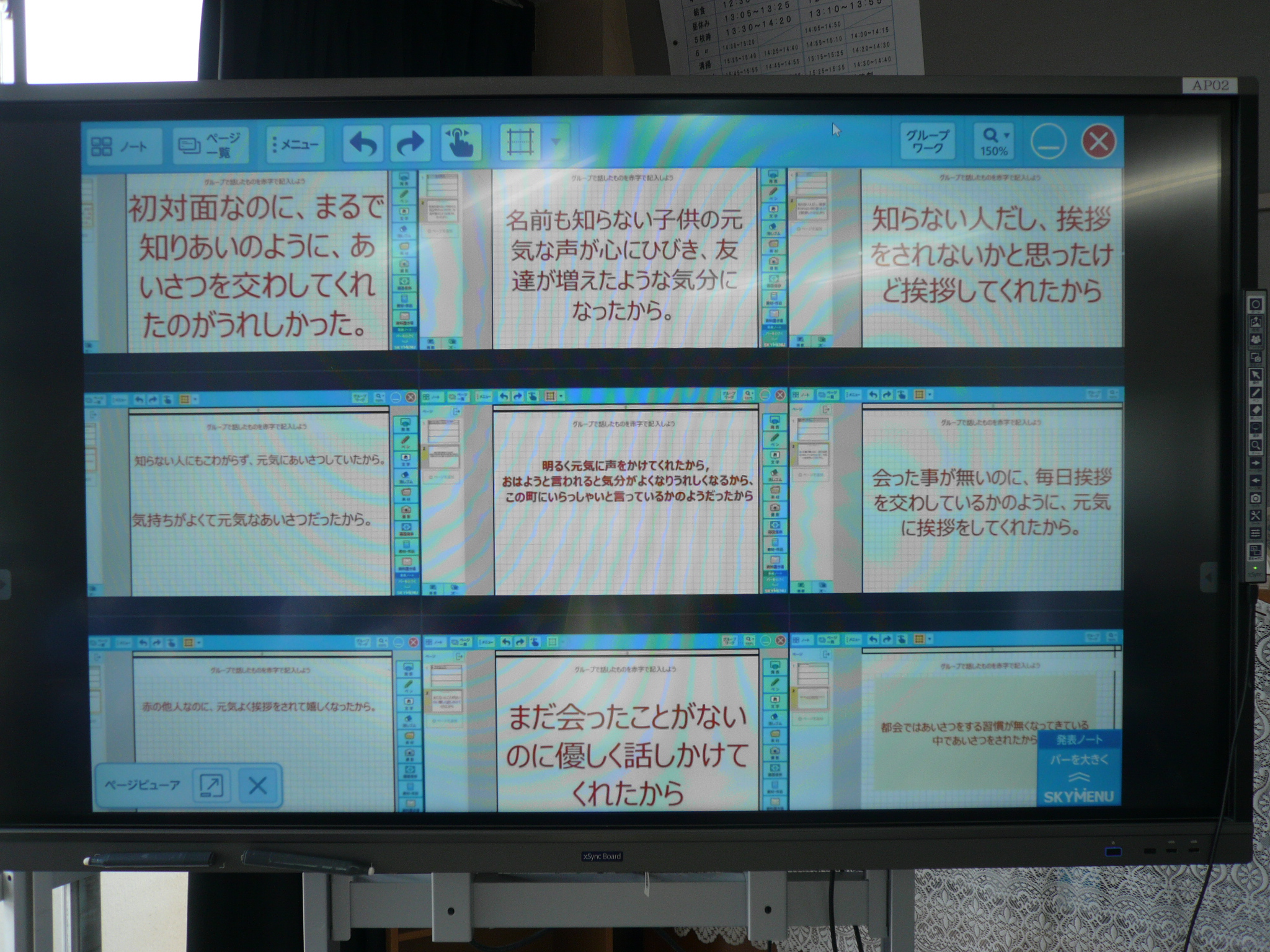ホワイトボードを掲示し、クラス全体で共有しました