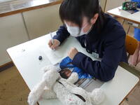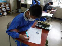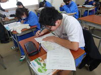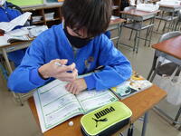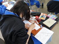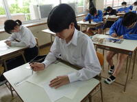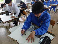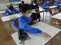 2年生は見本を見せながら、1年生はその見本を見て熱心に練習しました。