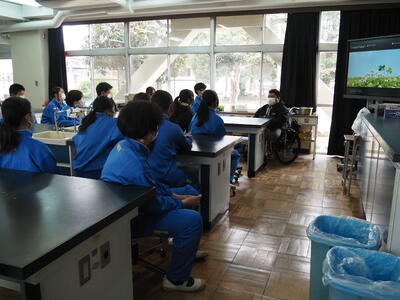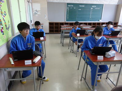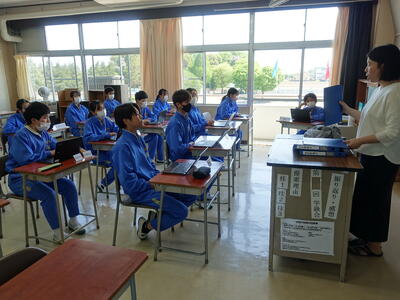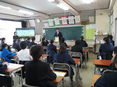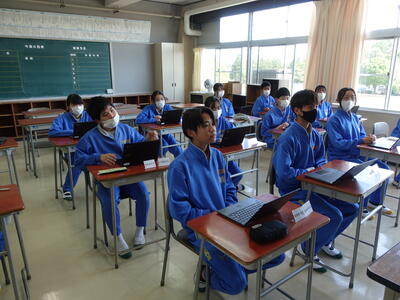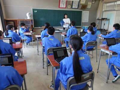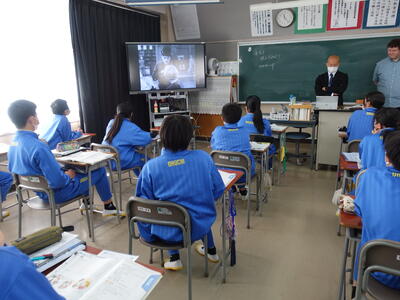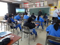 授業参観後、オンラインにて校長あいさつ・国際交流説明・部活動地域移行説明を行いました。