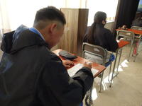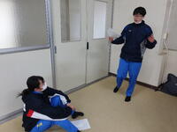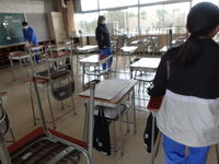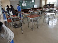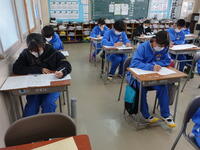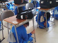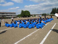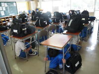 震度6強の地震が発生した想定で、教室内で安全を確認した後、校庭に避難しました。