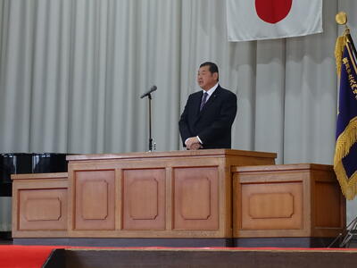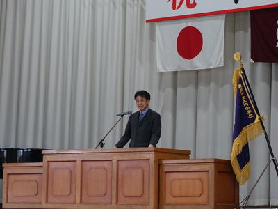 本校卒業生の水沼和幸さんに創立記念講話をしていただきました。