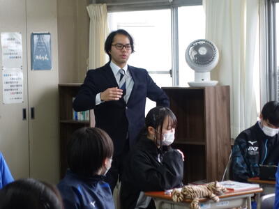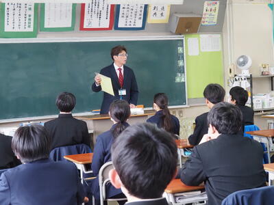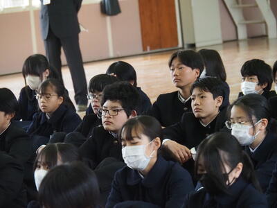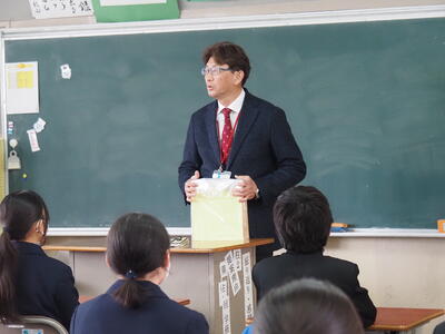 最初に校長先生から大内中の歴史と水沼さんの紹介がありました。