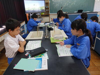 ◆1年2組 理科「屈折した光の道すじを作図することができる」