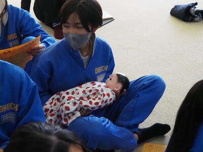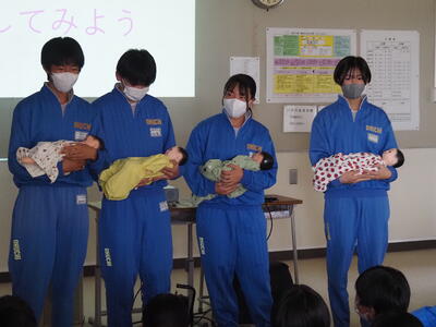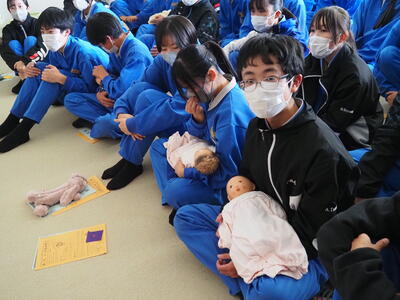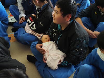 妊婦体験や赤ちゃんの人形を抱っこすることなどを通して、命の尊さを学びました。