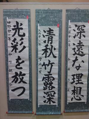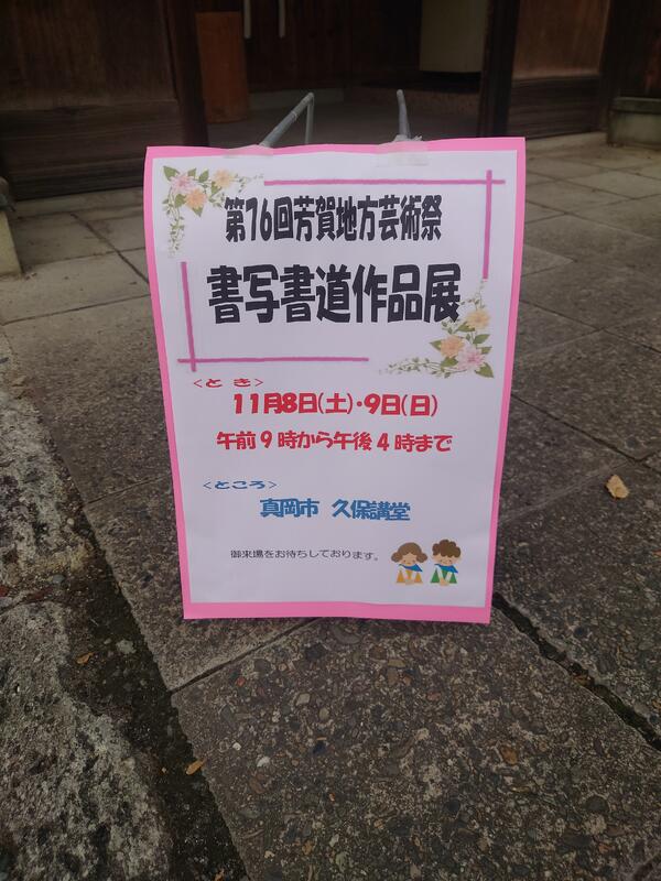 真岡市久保講堂にて書写書道作品展が開催されています。